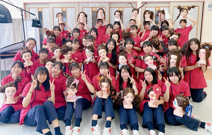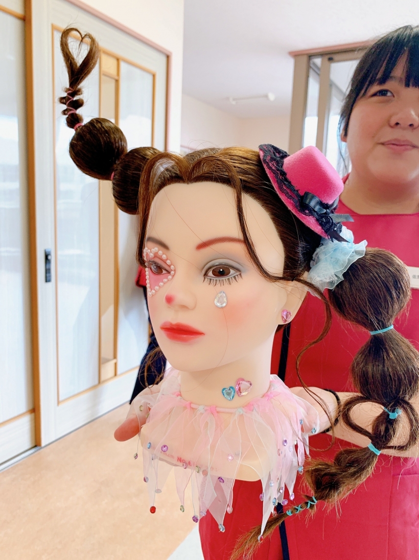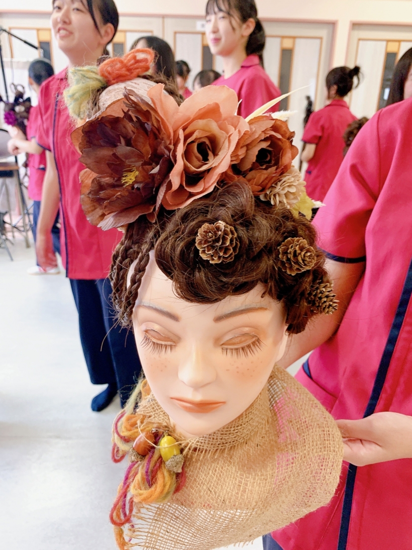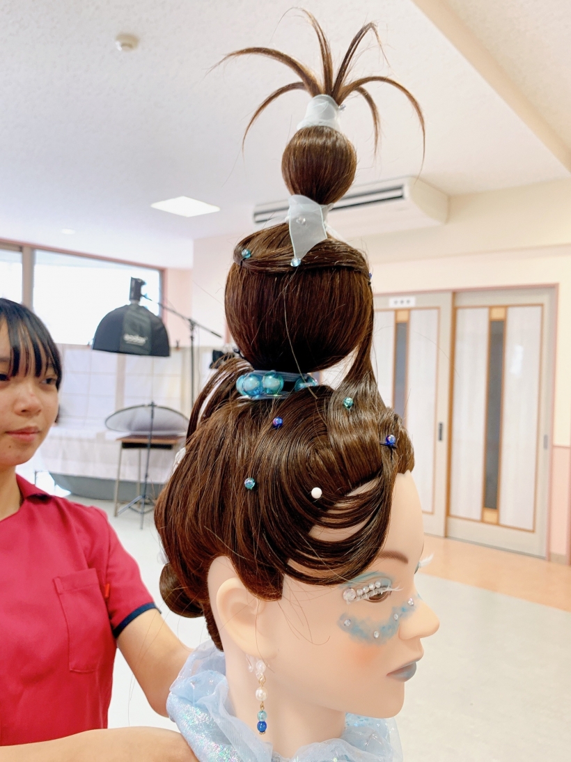 2023年09月04日(月) 美容師専攻ヘアデザイン作品!着実に腕を磨く! 美容師専攻1年生が「ヘアデザインコンテスト」を実施しました。入学して5ヶ月間でプロ顔負けのセンスと出来栄えにビックリ!!これもみんなの【美容好き】からくる集中力の賜物ですネ♪美容師専攻の礼儀正しく明るい雰囲気もとても魅力を感じました。