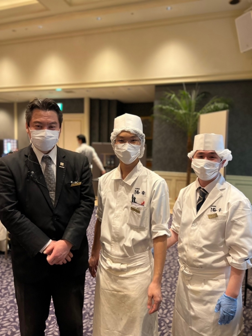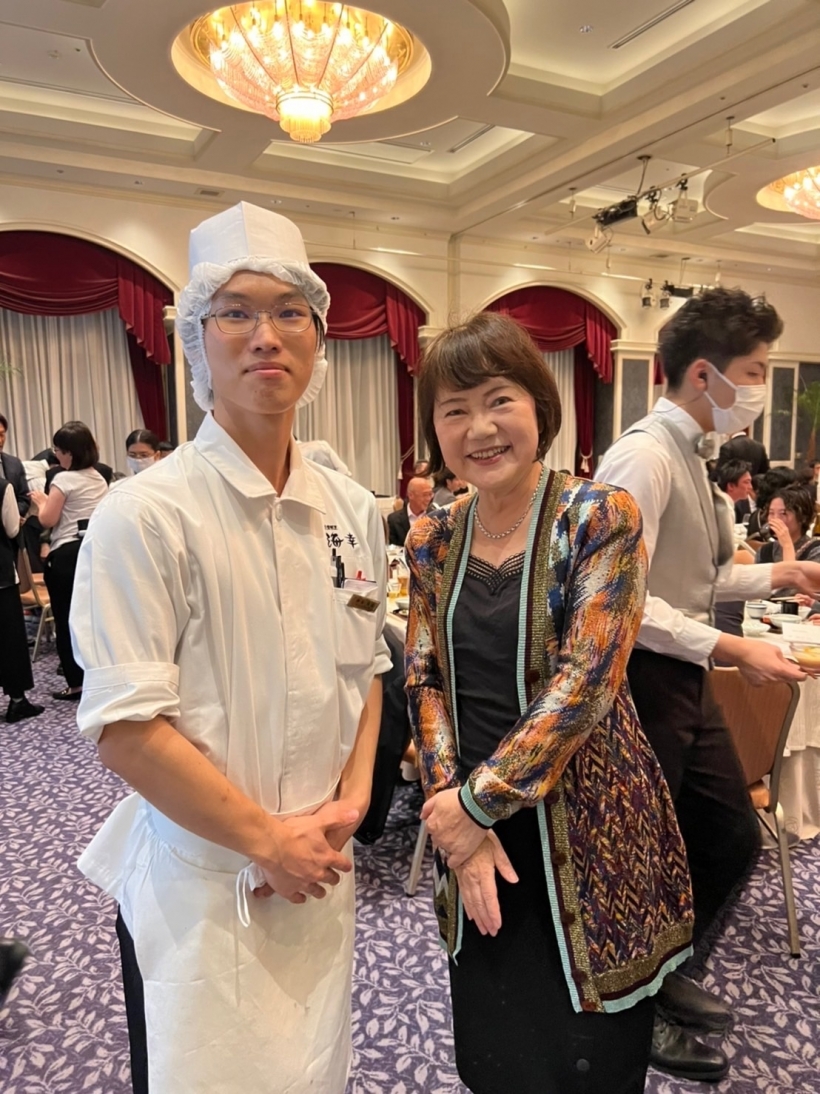 2023年10月18日(水) 【頑張る卒業生〜調理師編〜】 調理師専攻の卒業生の紹介です。 神本くん(矢作中学校出身)は現在、会員制ホテル[エクシブ鳥羽]の日本料理部門に就職し、調理師として日々励んでいます。高校の頃より謙虚であり努力家だった性格から、3年間で包丁の扱いや料理人としての人格がみるみる育ったと元担任の先生は言います。職場では新たに自信をつけ、生き生きと輝きを見せていました。職場でより一層腕を磨き、新たな目標に向けて頑張ってくださいね。