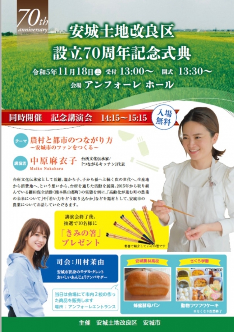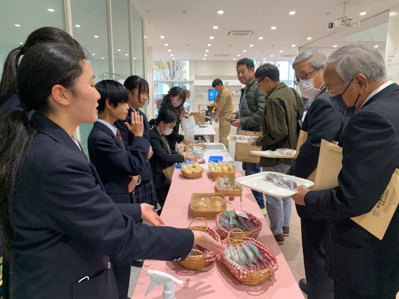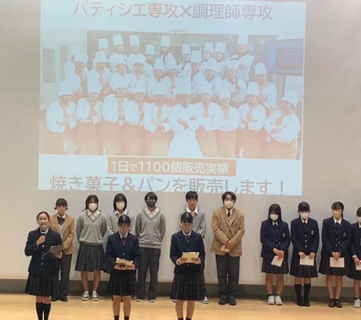 2023年11月18日(土) パティシェ専攻&調理師専攻が70周年記念式典参加 11月18日、アンフォーレで安城土地改良区設立70周年記念式典があり、パティシェ専攻and調理師専攻が安城産いちぢくなどを使用した自慢の洋菓子やパンを販売しました!なんと6時間で1000個完売した実績のある自慢の洋菓子たちです