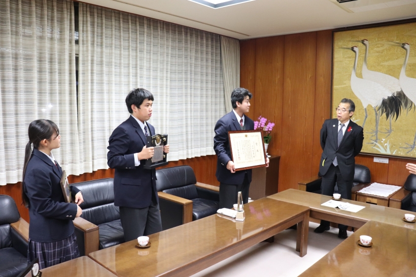 に受賞の報告と各自の作文のテーマについて報告させて頂きました。