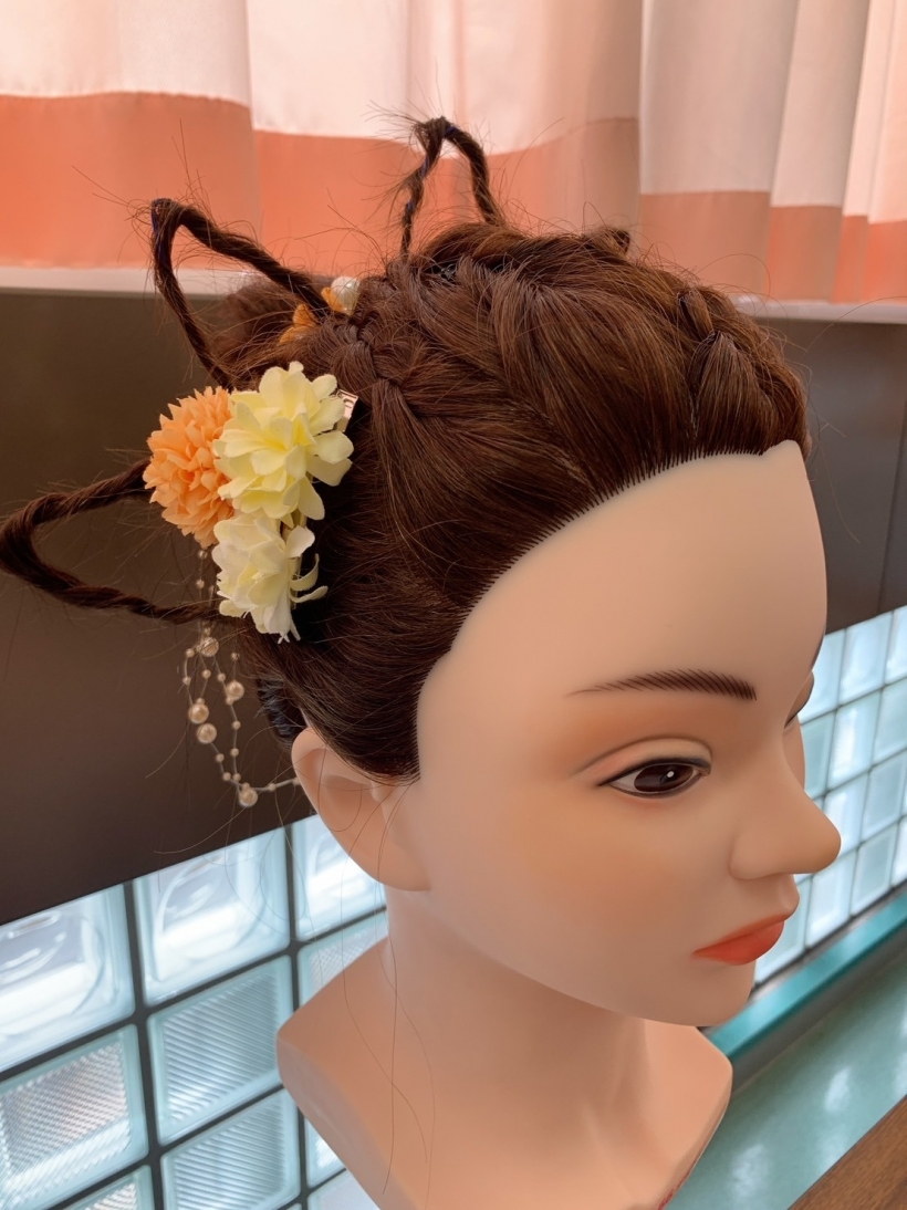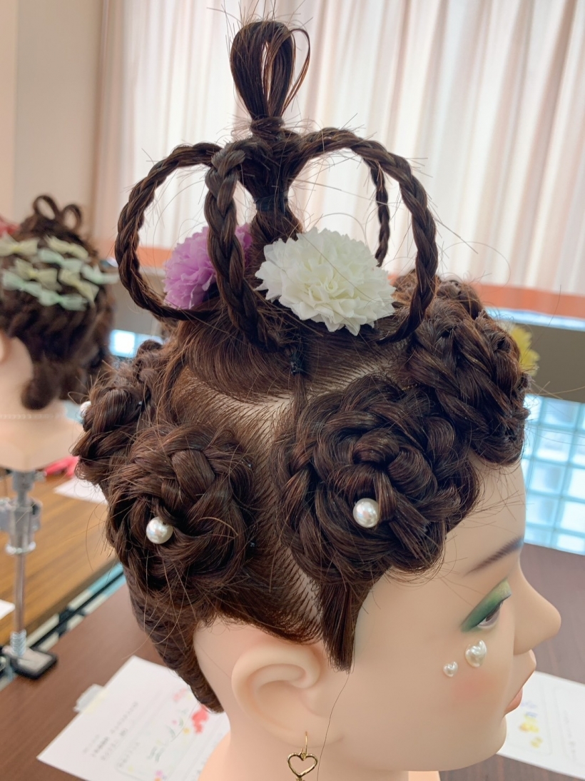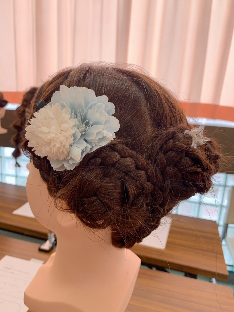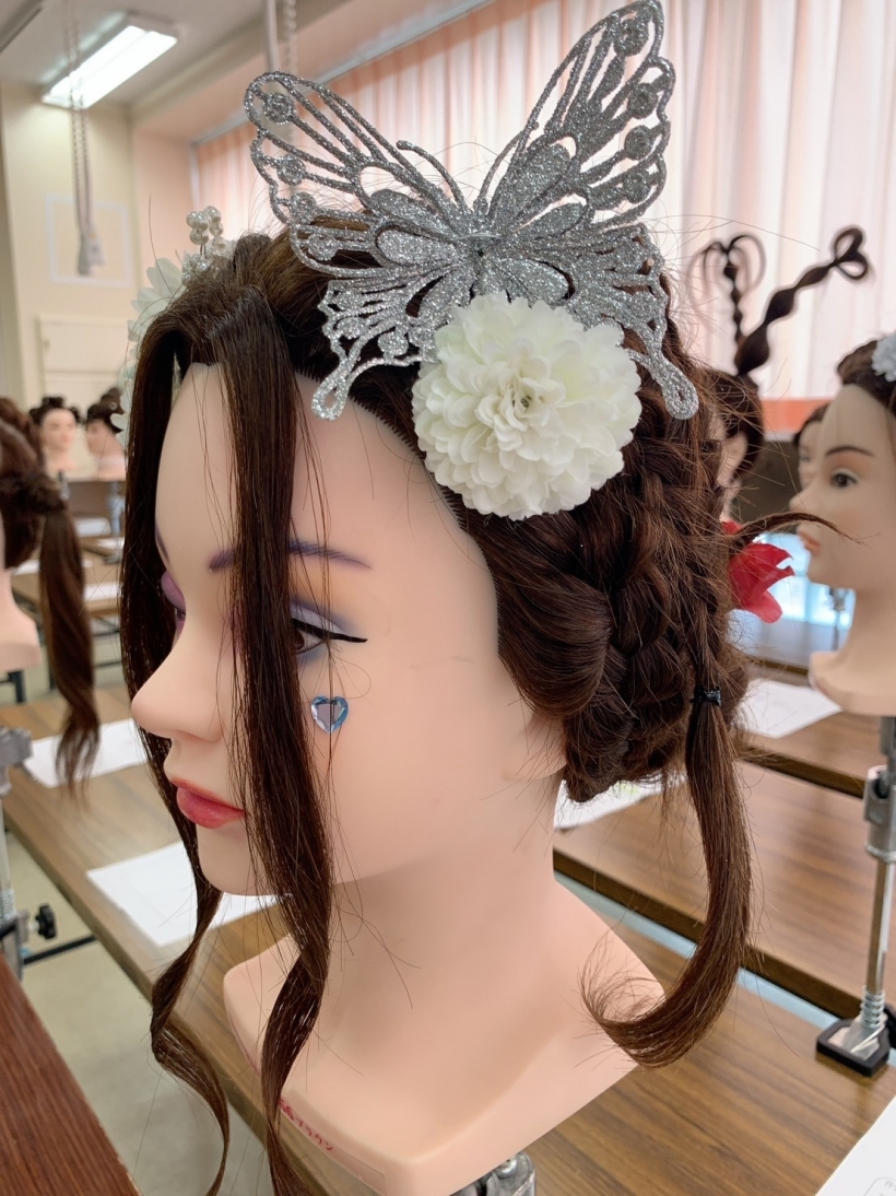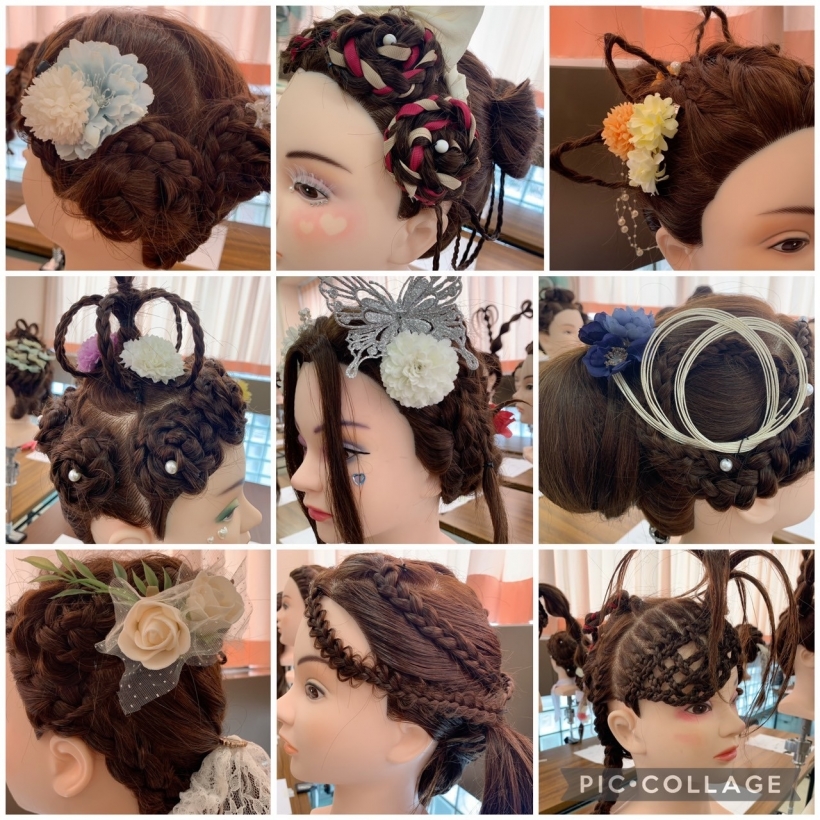 美容師科の1年生が、夏休み課題である「アップスタイル」の作品が勢ぞろい♪