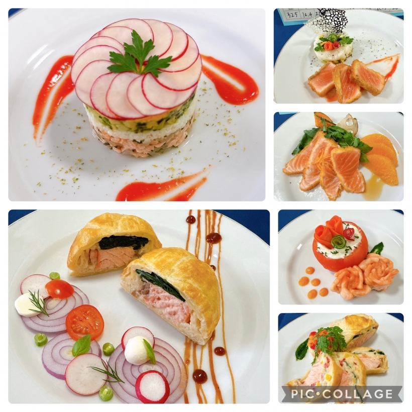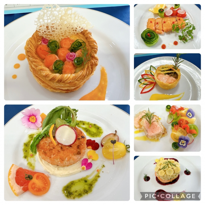 調理師専攻3年生が、『サーモン』をテーマに一人ひとりがこだわりの作品に仕上げ、競い合いました。