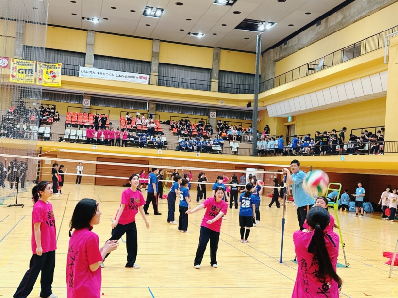2025年06月26日(木) 球技大会で大健闘!! 球技大会に向けて生徒会やクラス委員などが準備を重ね、6月26日、無事開催されました!! 全てのクラスが一丸となってバレーボールプレーをし、またクラス仲間を全力応援して、盛り上がりました♪♪ 担任の先生も一喜一憂し、クラスの絆も益々深まりました! 生徒会が中心になって準備をしました。