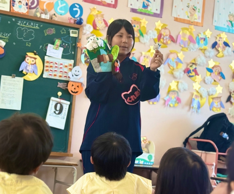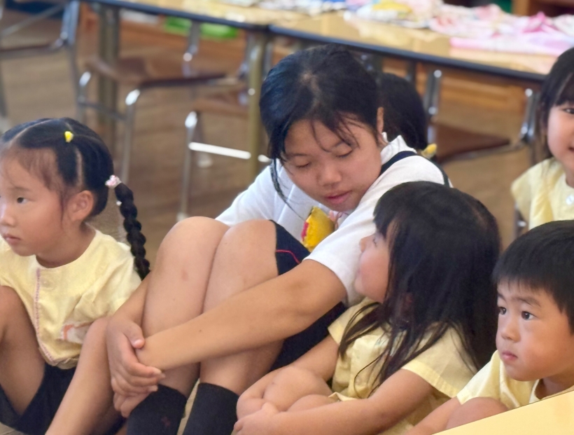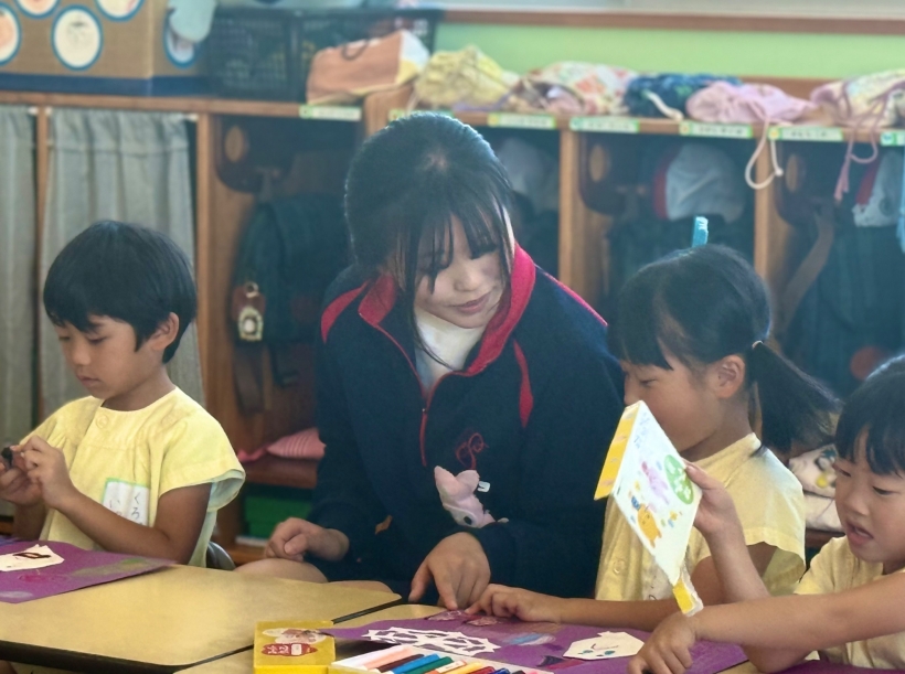 2025年10月17日(金) 【保育専攻】【調理師専攻】幼稚園実習で実践力を身につけました。 保育専攻と調理師専攻の2年生が、姉妹園の第二慈恵幼稚園で実習を行いました。 保育専攻では、普段学んだ保育の知識や製作したグローブシアターなどを、 実際に園児さんの前で披露したり、保育士の先生から対応の仕方などを学びました。 調理師専攻では、給食現場に入り、 管理栄養士の方から直接学んだり授業で学んだことを実践力に結びつける貴重な機会となりました。 実習が終わった後には、学んだことを発表する幼稚園実習発表会では、学んだことや反省、また意見交換などをして次につながる機会となりました。
