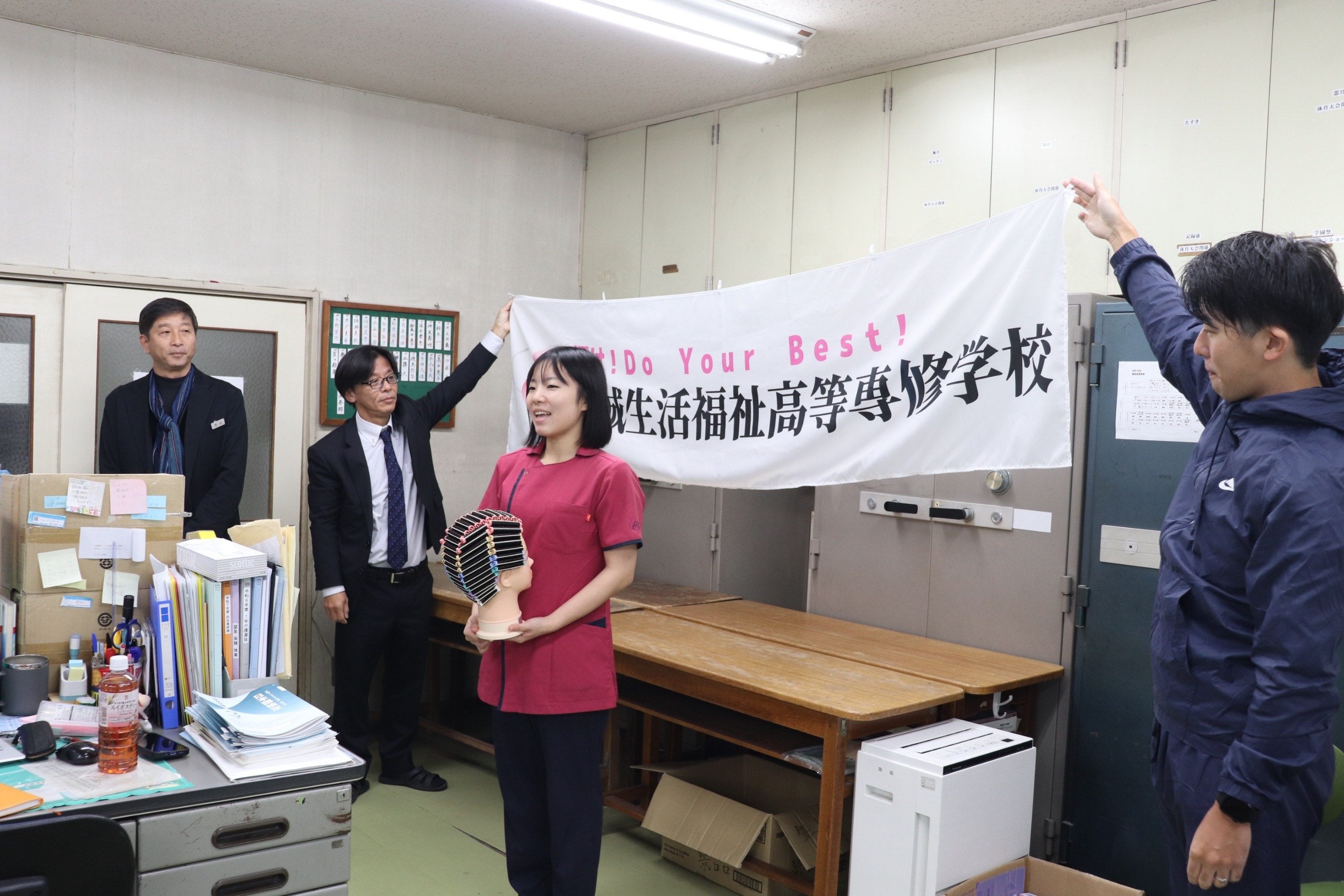 そして明日の会場でも学科長の本山先生が応援幕を持って現地入りします!!