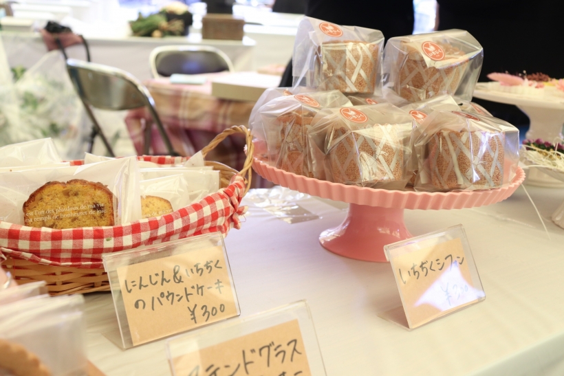 パティシエ専攻は花(いちじく)を使用したパウンドケーキをはじめ、焼菓子を販売。