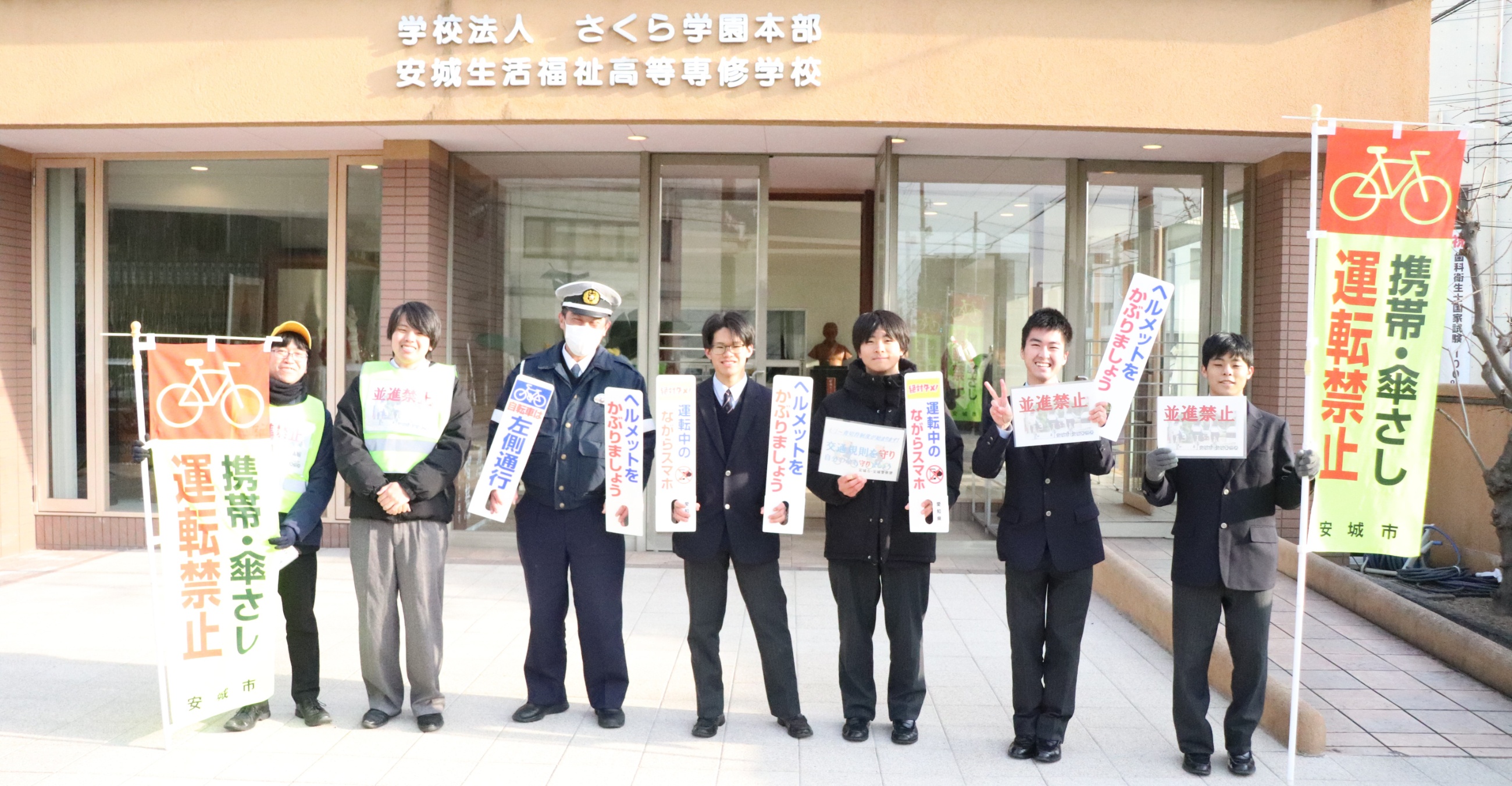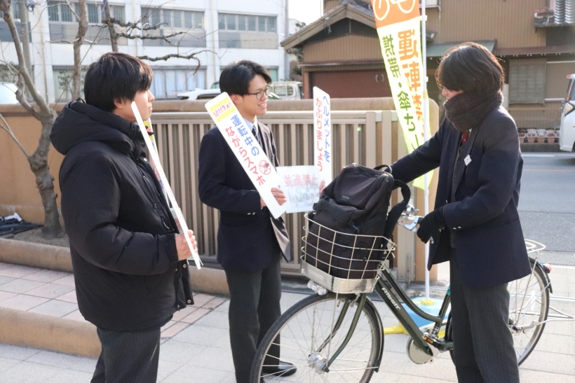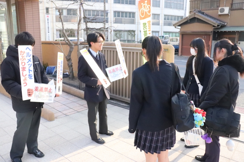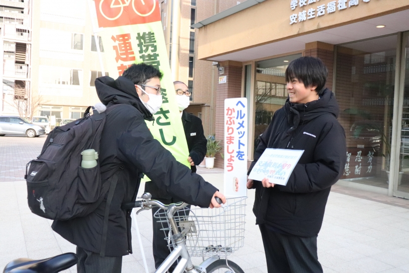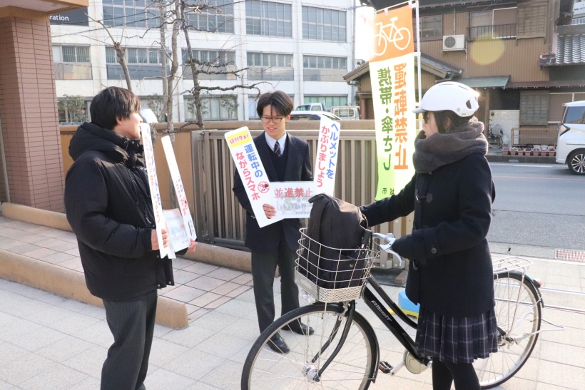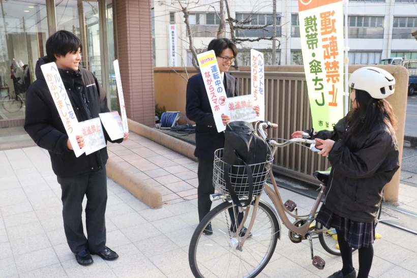 2026年01月27日(火) NEW 青切符はじまる!啓発活動☆彡 with 安城市&安城警察署 青切符(交通反則告知書)制度が2026年4月1日から始まります! そこで、安城市市民安全課と安城警察署と共同で、生徒と啓発活動を行いました。 青切符(交通反則告知書)は、比較的軽微な交通違反に対し、 刑事裁判の代わりに反則金を納付することで処理を簡略化する制度です。 2026年4月1日から16歳以上の自転車運転者にも適用され、 信号無視やスマホながら運転などに反則金が科されます。 みなさんも気を付けましょうね!