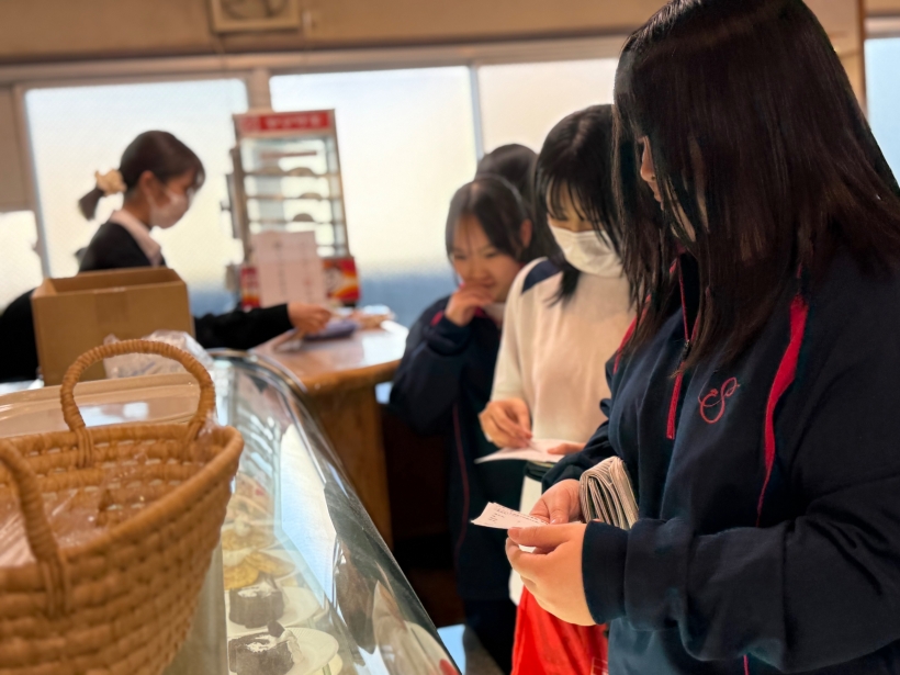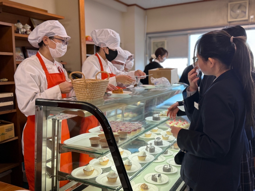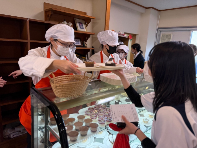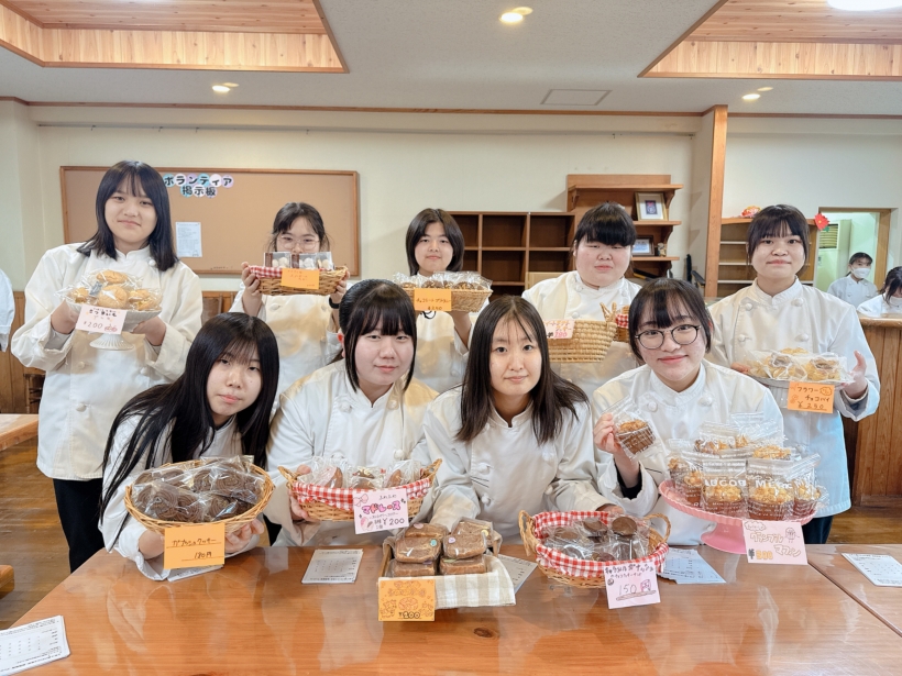 日頃の学んだ成果を発揮し、自分たちで考えた洋菓子やケーキ、パイ、そしてドリンクまでを全校生徒に向けて校内で販売しました。