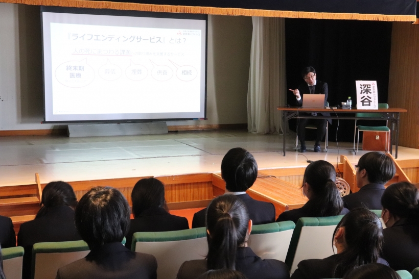 2026年02月24日(火) NEW 医療福祉専攻 企業講話 ファミーユ安城さま 医療福祉専攻2年生が、ファミーユ安城様をお招きして、企業講話をして頂きました。 超高齢化社会において、高齢者の関心事である「エンディング」について学びました。 高齢者の接客現場である留意事項や創意工夫など 実例と共に分かりやすく教えて頂きました☆彡 昨今の動勢を学ぶ事は、 医療や福祉を学ぶ生徒にとってとても大切な事です! 次回3/25は、模擬葬儀体験でファミーユ安城へ訪問させて頂きます。 入棺体験もさせて頂く貴重な日です。 今日学んだ事を活かして、 将来展望を深めてくださいね!