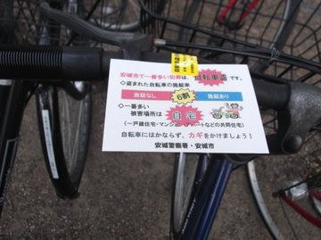 無施錠の自転車に盗難注意⚠️を呼び掛ける