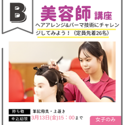 ※ファッション・美容・保育・医療福祉講座の申し込みは前日15:00までです。